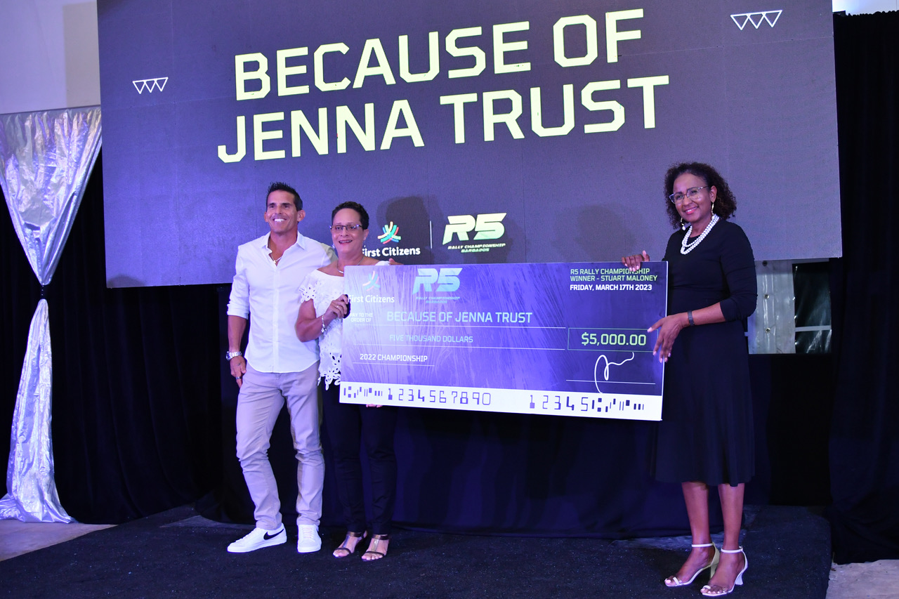 Island charity The Because of Jenna Trust received a donation of $5,000 from the 2022 R5 Rally Championship, presented by First Citizens, last Friday (March 17) at the first event of a busy weekend for competitors as the new season also got under way. As the Barbados Motoring Federation’s (BMF) first-ever national championship, the R5 Prizegiving played a prominent role in the BMF’s inaugural Night of Champions.